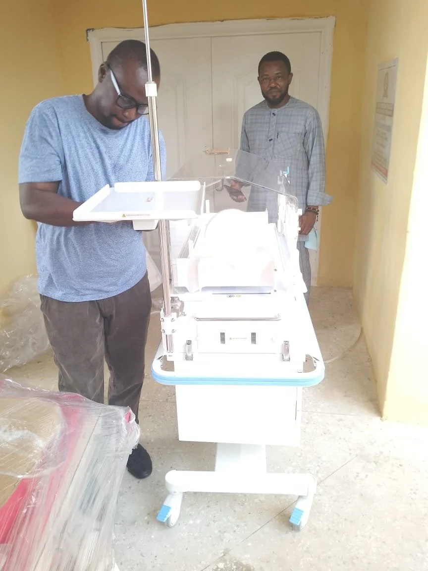 The purchased items, consisting of an Amis Baby Incubator with Trolley & Cabinet and a Motorized Birthing Bed, safely arrived in Auchi and our team, alongside the incredible liaisons on the ground, including Mr. Alhaji Kadiri Ishaq Aikomoh and Mr. Aruna Zakariyau Zakson, actively managed logistics, including transportation, delivery, and assembly. To ensure a seamless process, their roles were vital, in the procurement and assembly of the equipment at the hospital. Their dedication and expertise have been instrumental in bringing this project to fruition.